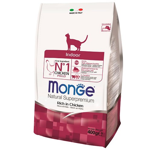 MONGE (МОНЖЕ) SUPERPREMIUM CAT INDOOR - это полноценный сбалансированный рацион для домашних кошек с низкой физической активностью. Подходит для контроля веса питомцев, склонных к полноте. Содержит важнейшие антиоксиданты, такие как витамин Е, для поддержания иммунной системы.